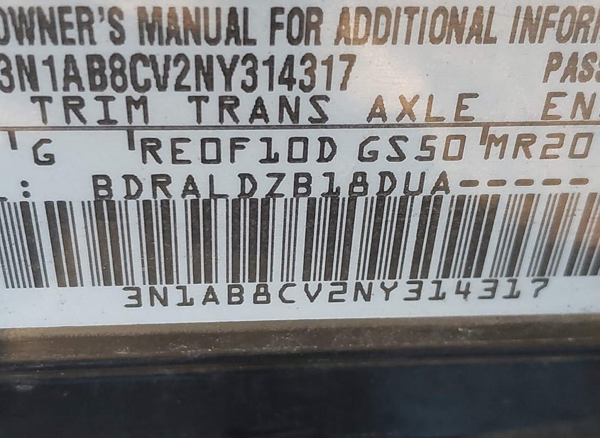 - VIN: 3N1AB8CV2NY314317