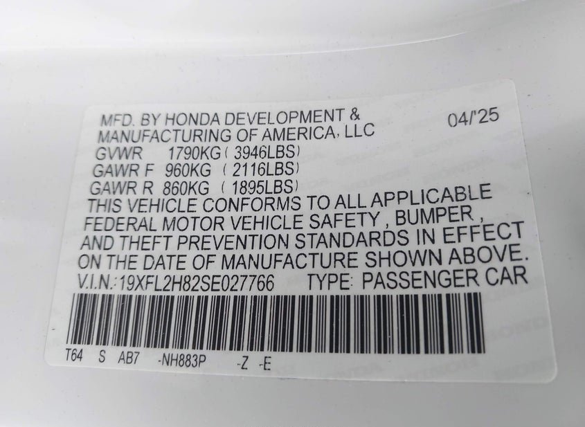 - VIN: 19XFL2H82SE027766