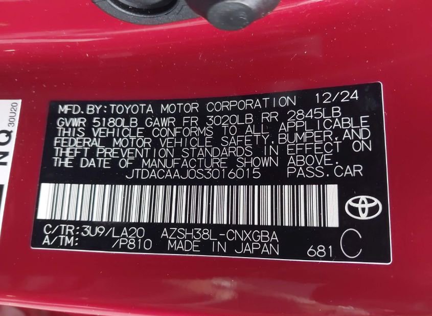 - VIN: JTDACAAJ0S3016015