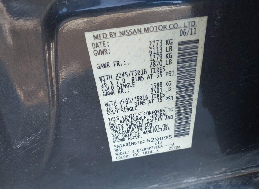 - VIN: 5N1AR1NB3BC629095