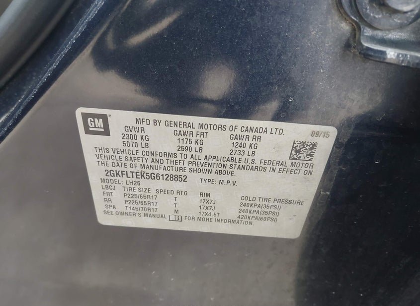 - VIN: 2GKFLTEK5G6128852