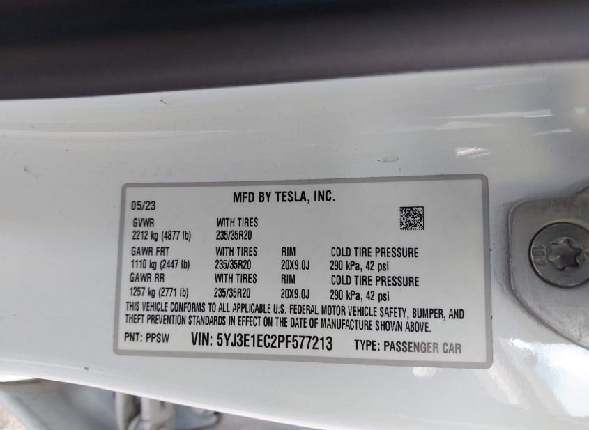 - VIN: 5YJ3E1EC2PF577213