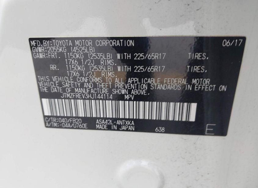 - VIN: JTMZFREV3HJ144114