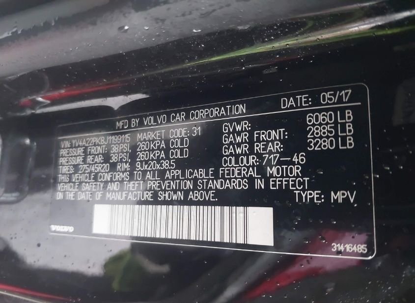 - VIN: YV4A22PK8J1199115