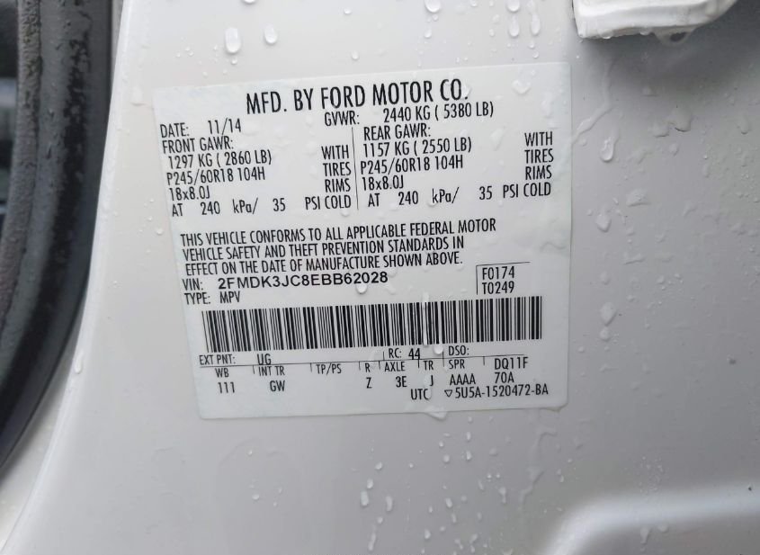- VIN: 2FMDK3JC8EBB62028