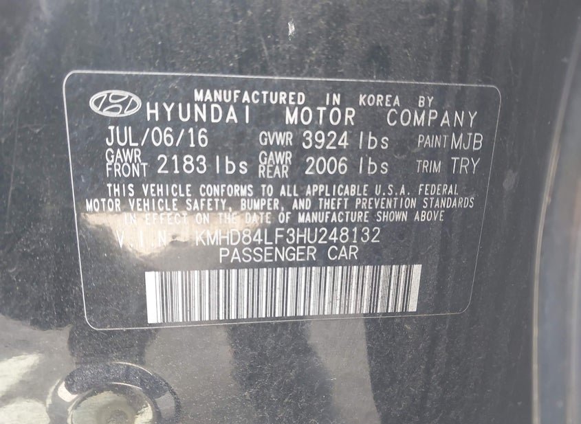 - VIN: KMHD84LF3HU248132