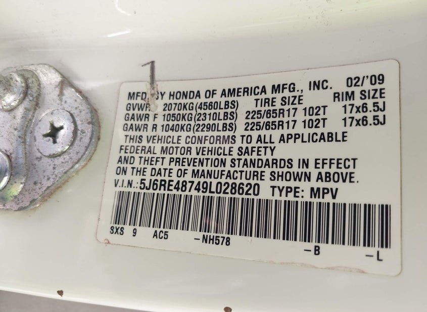 - Название лота: 2009 HONDA CR-V EX-L