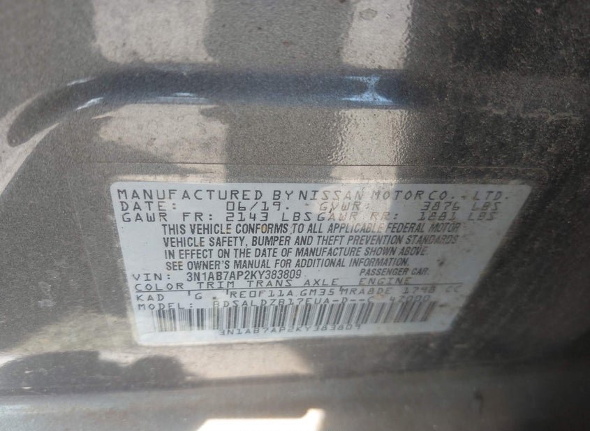 - VIN: 3N1AB7AP2KY383809