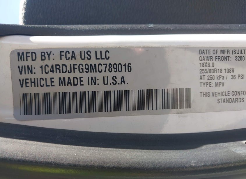 - VIN: 1C4RDJFG9MC789016