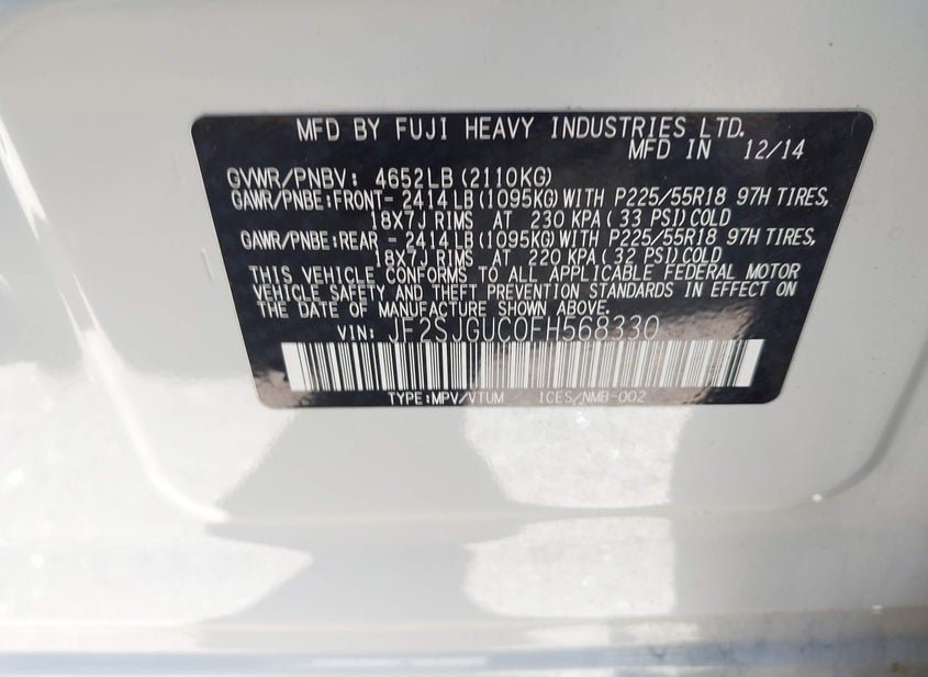 - VIN: JF2SJGUC0FH568330