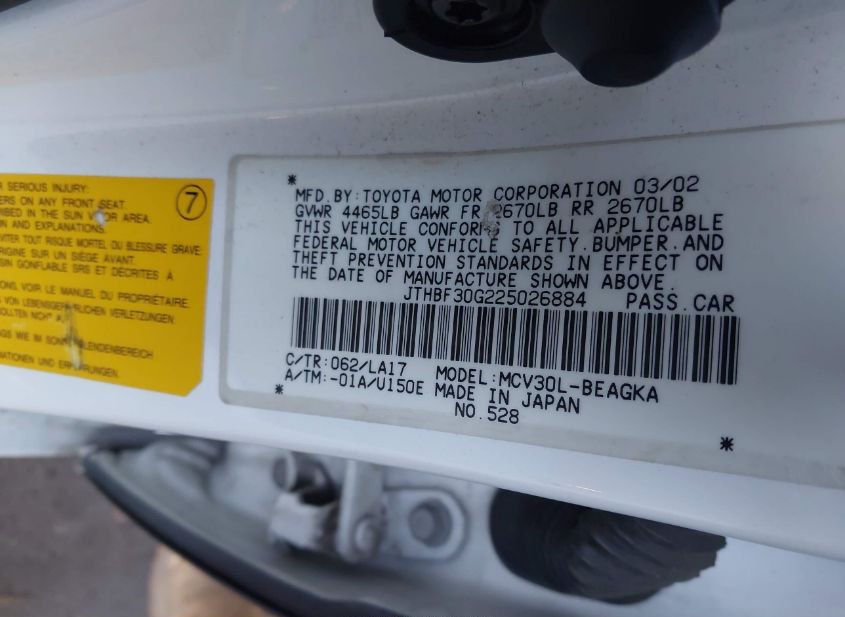 - VIN: JTHBF30G225026884