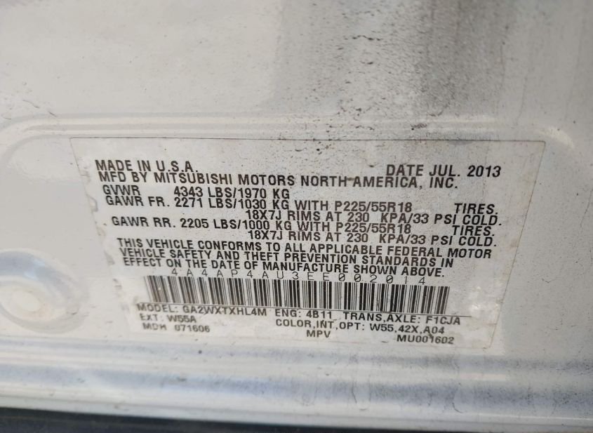 - Название лота: 2014 MITSUBISHI OUTLANDER SPORT SE