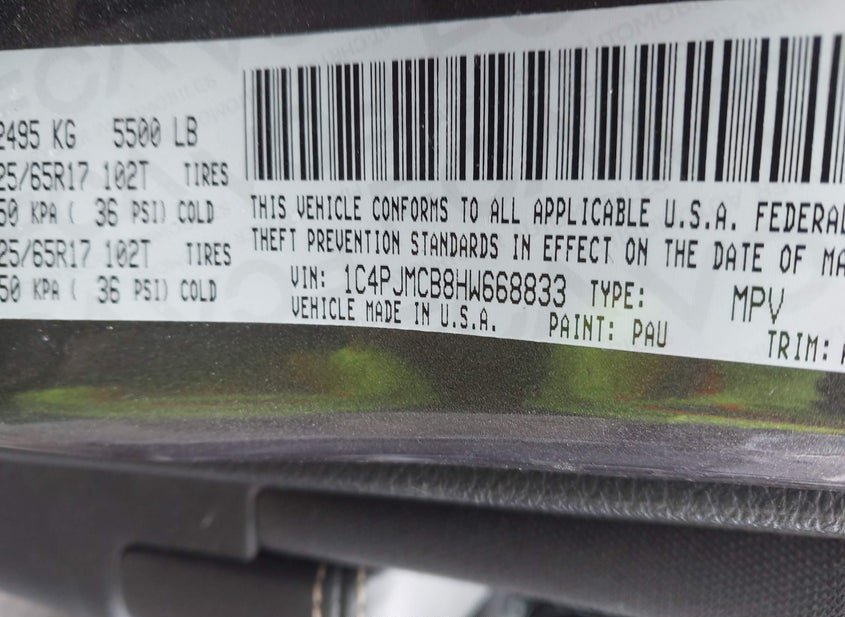 - VIN: 1C4PJMCB8HW668833