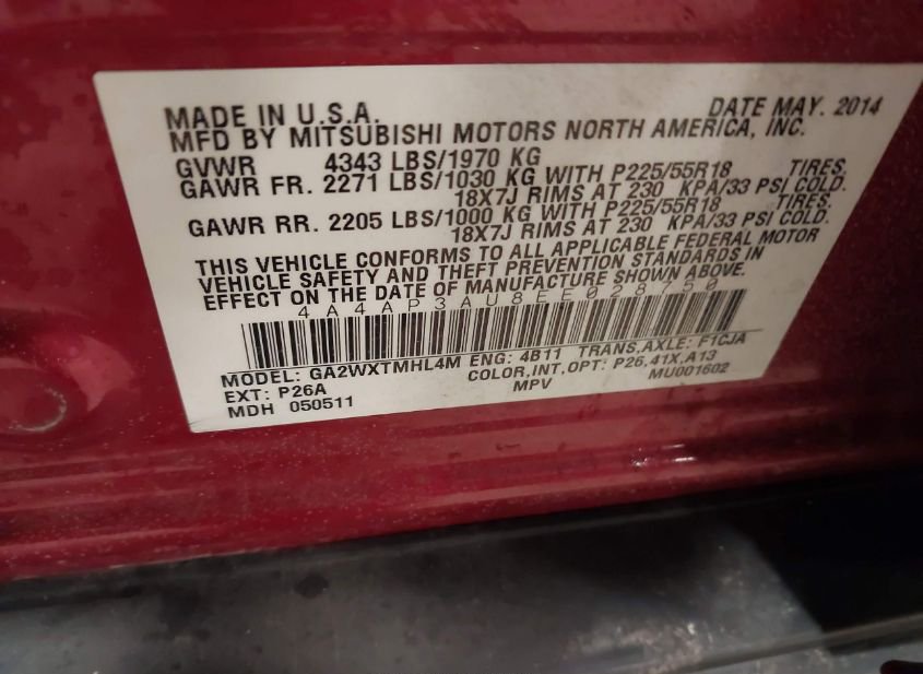 - VIN: 4A4AP3AU8EE028750