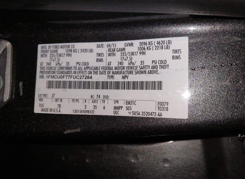 - VIN: 1FMCU0F77FUC27284
