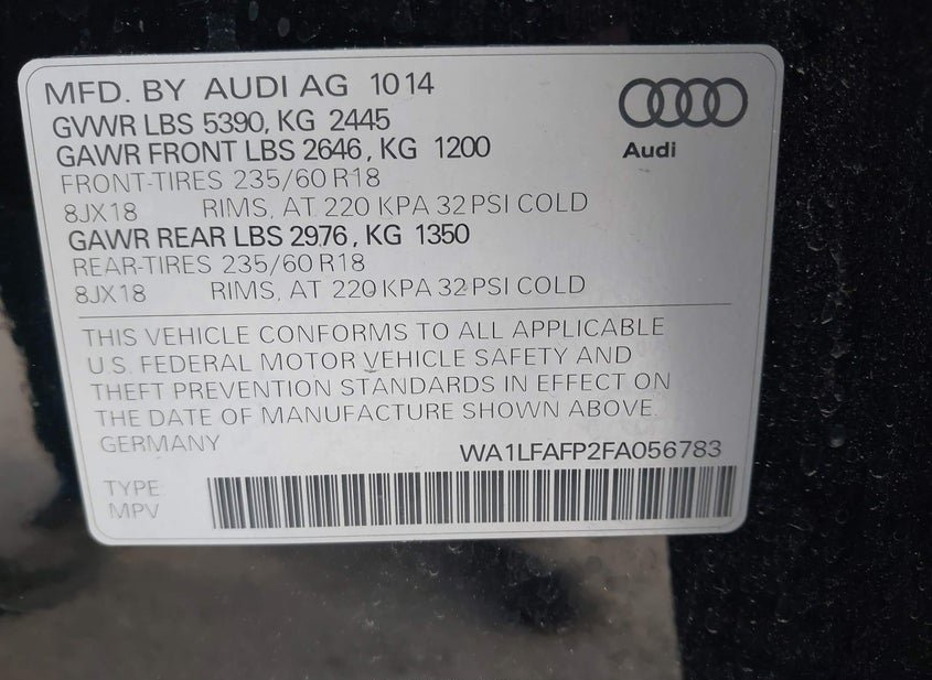 - VIN: WA1LFAFP2FA056783