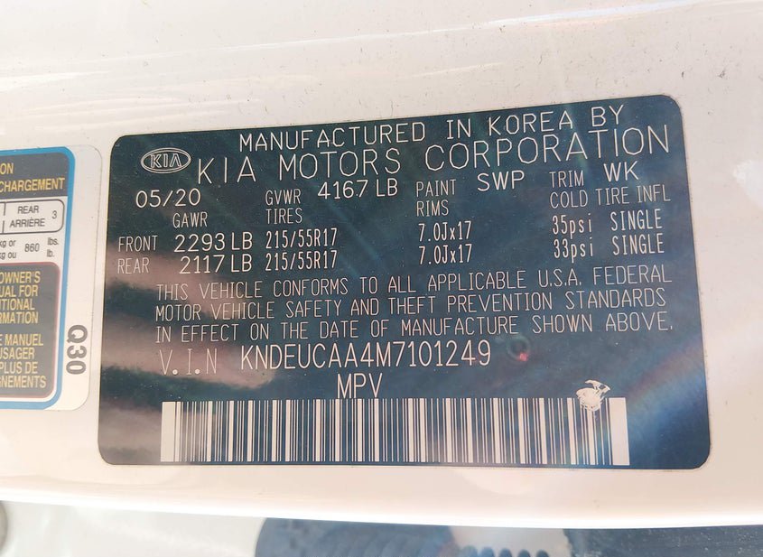 - VIN: KNDEUCAA4M7101249