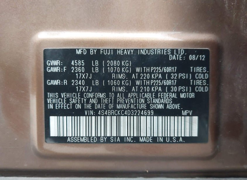 - VIN: 4S4BRCKC4D3224699