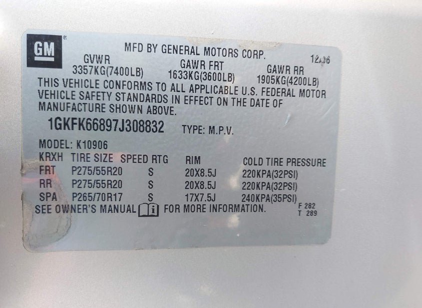 - VIN: 1GKFK66897J308832