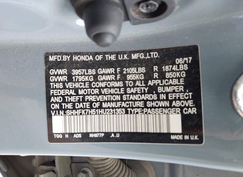 - VIN: SHHFK7H51HU231353