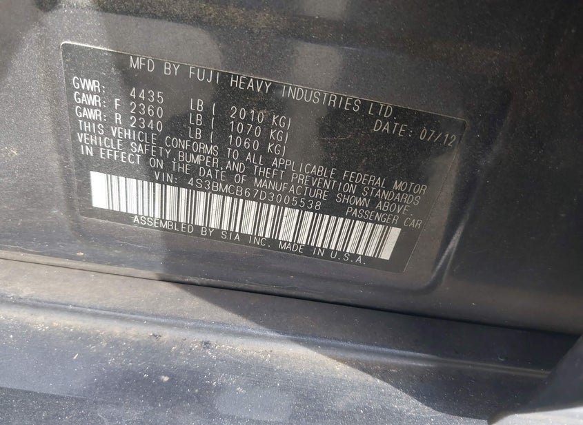 - VIN: 4S3BMCB67D3005538