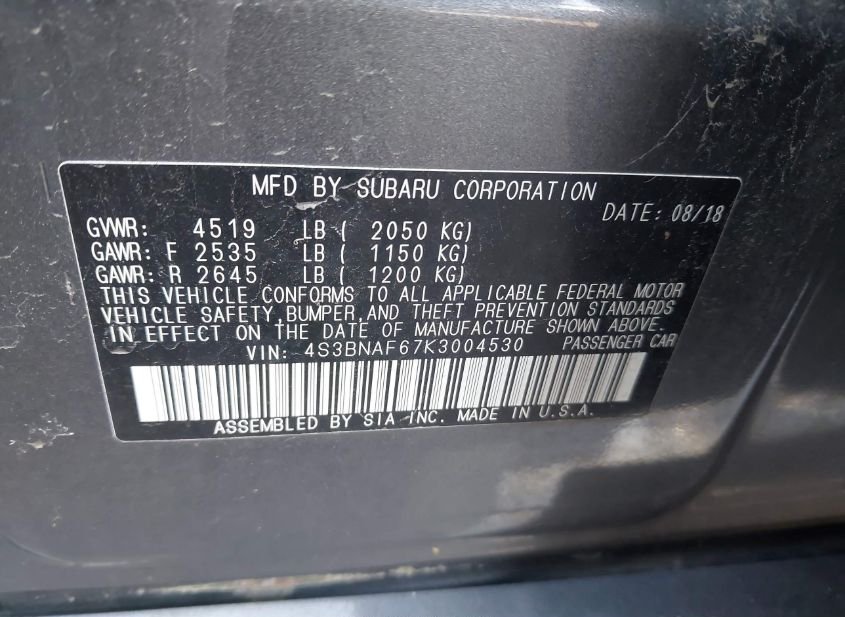 - VIN: 4S3BNAF67K3004530
