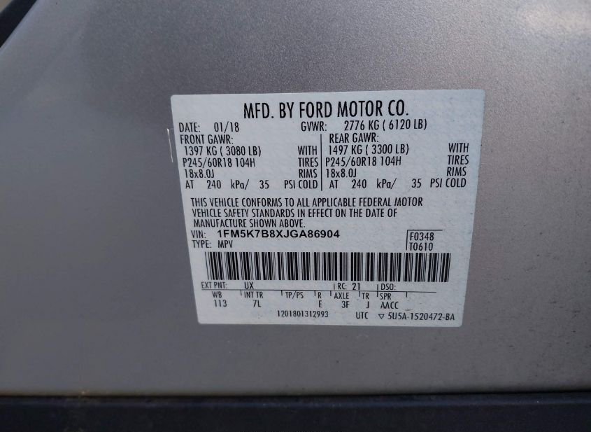 - VIN: 1FM5K7B8XJGA86904