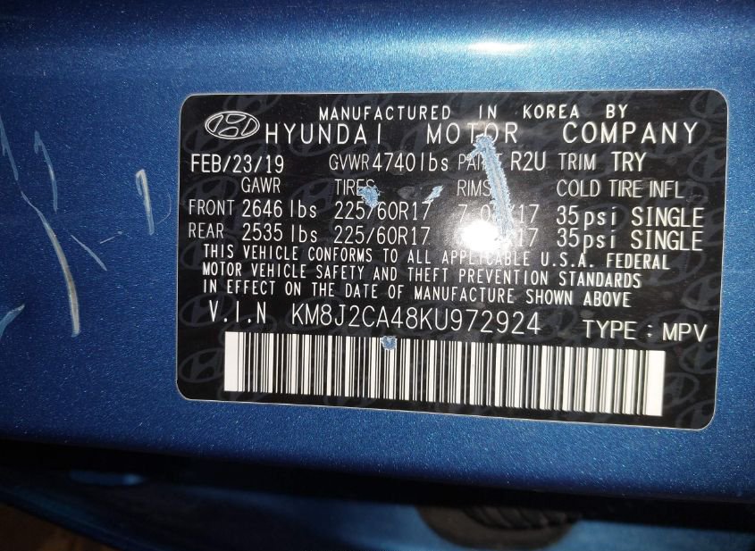 - VIN: KM8J2CA48KU972924