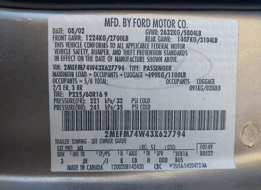- VIN: 2MEFM74W43X627794
