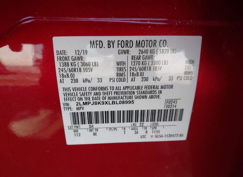 - VIN: 2LMPJ8K9XLBL08995