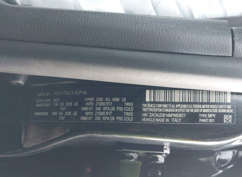 - VIN: ZACNJDB14NPN83817