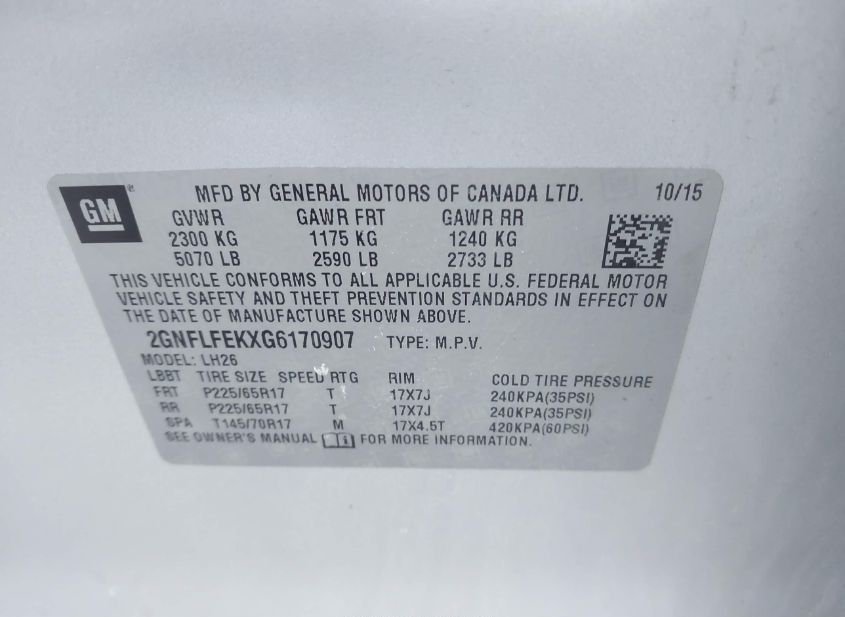 - VIN: 2GNFLFEKXG6170907