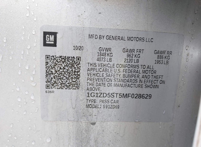 - VIN: 1G1ZD5ST5MF028629