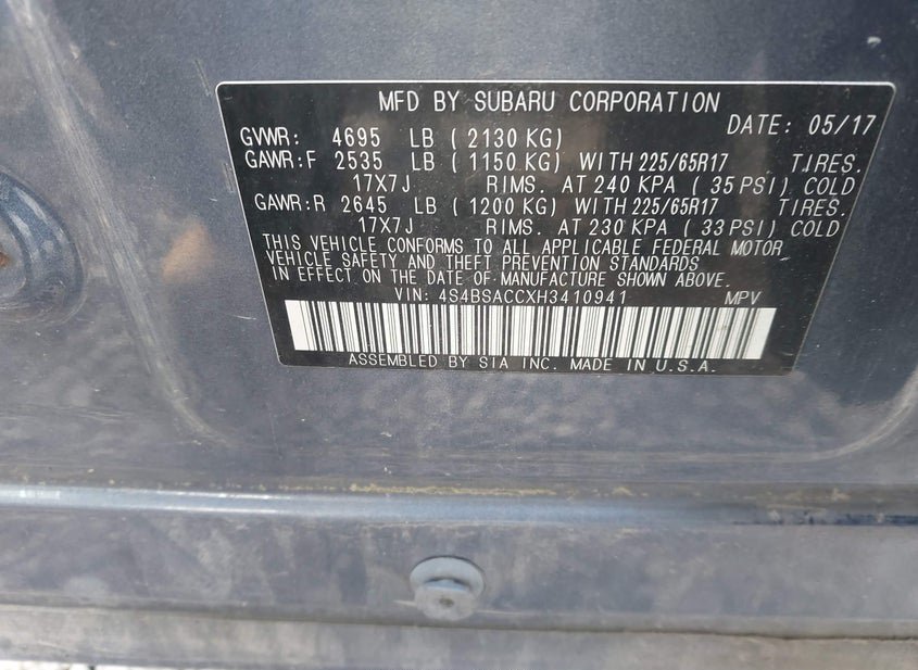 - VIN: 4S4BSACCXH3410941