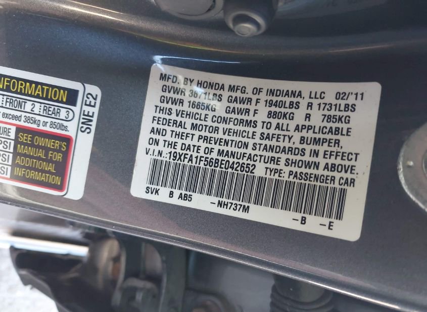 - VIN: 19XFA1F56BE042652