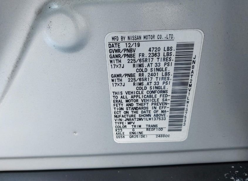 - VIN: JN8AT2MV1LW137533