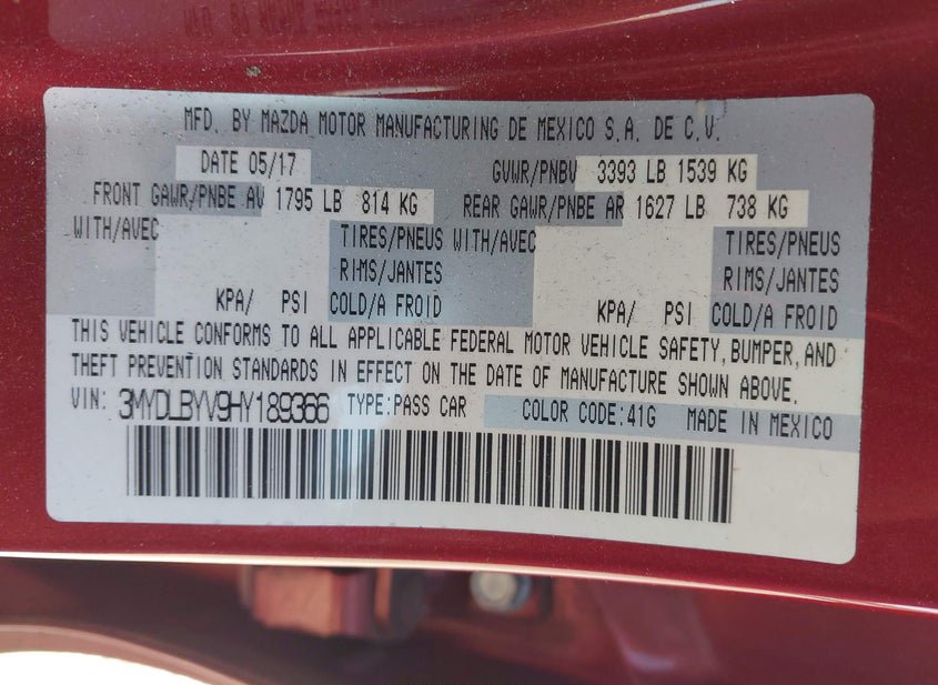 - VIN: 3MYDLBYV9HY189366