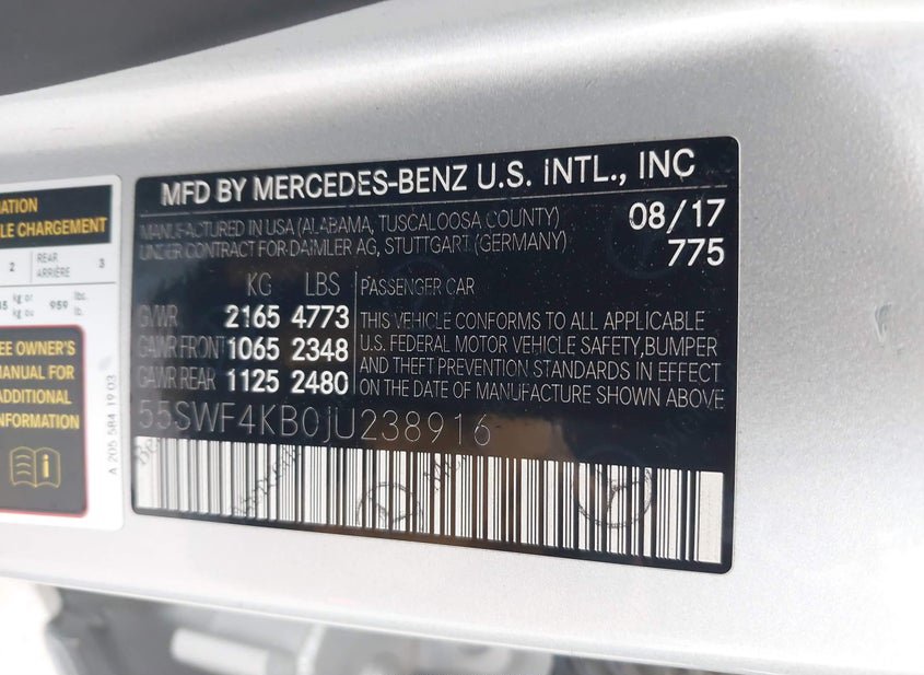 - VIN: 55SWF4KB0JU238916
