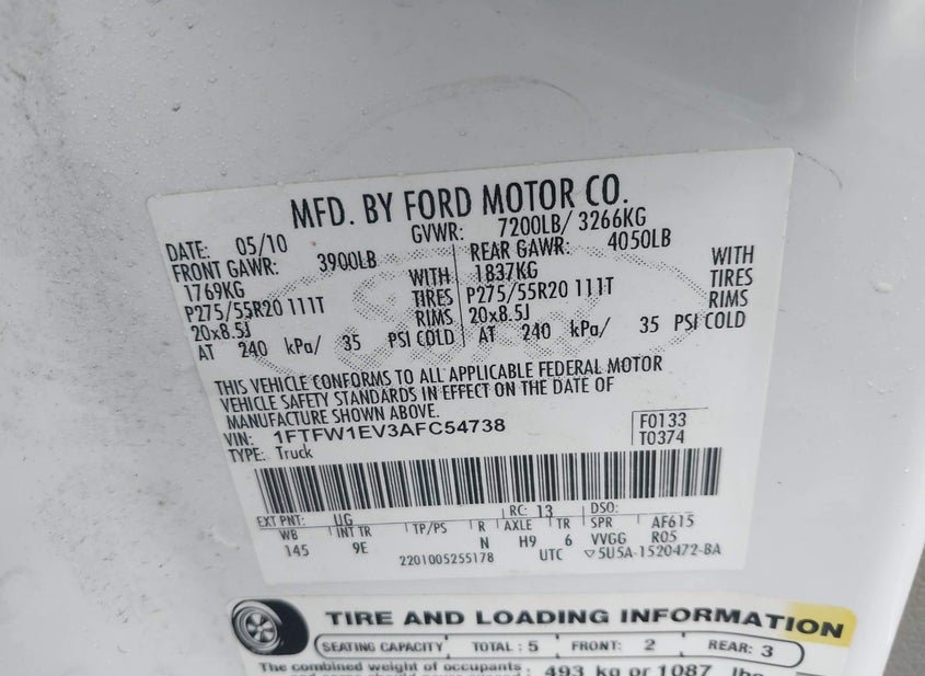 - VIN: 1FTFW1EV3AFC54738