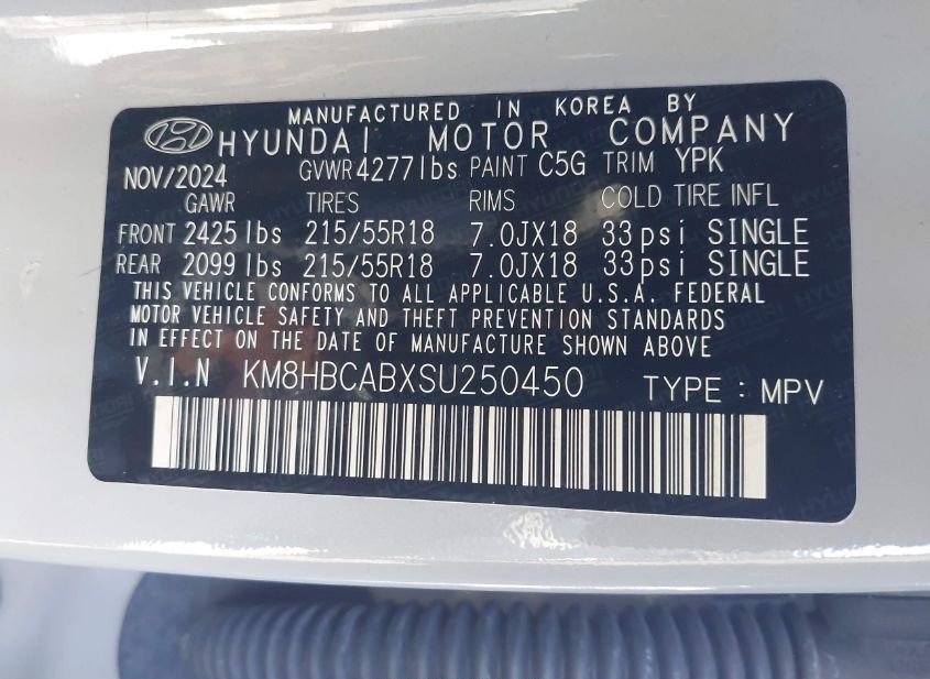 - VIN: KM8HBCABXSU250450