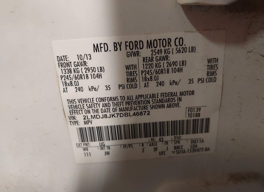 - VIN: 2LMDJ8JK7DBL46872
