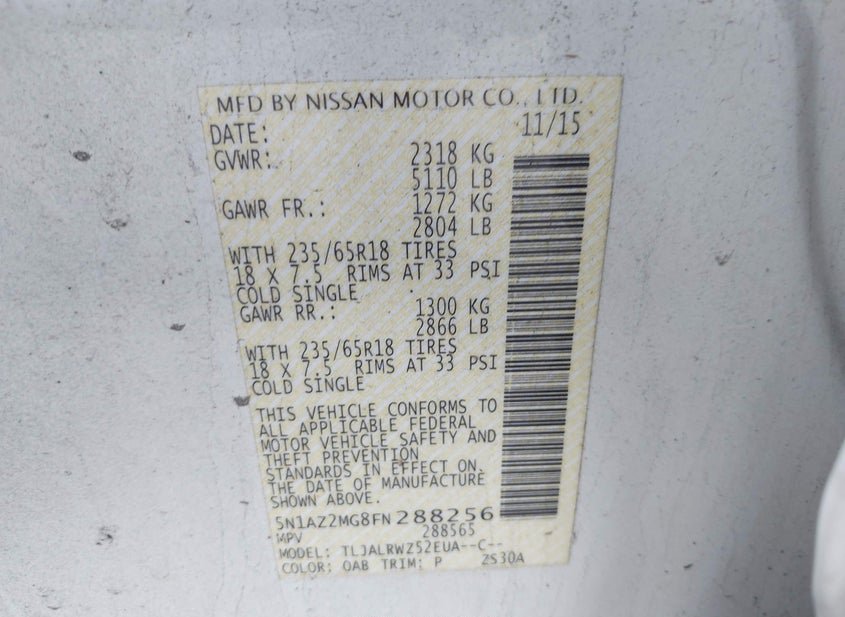 - VIN: 5N1AZ2MG8FN288256
