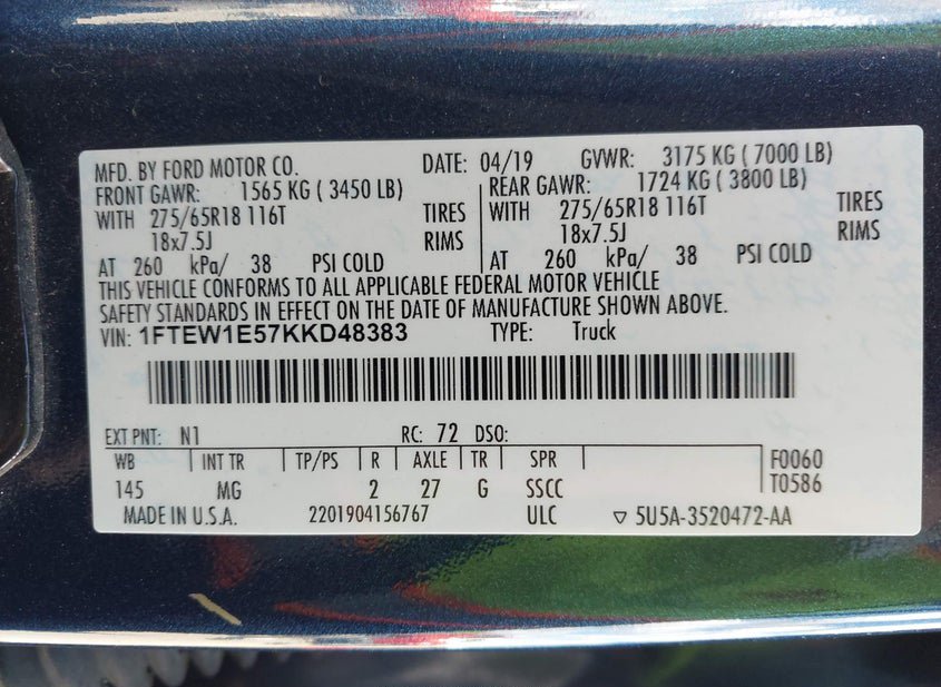 - VIN: 1FTEW1E57KKD48383