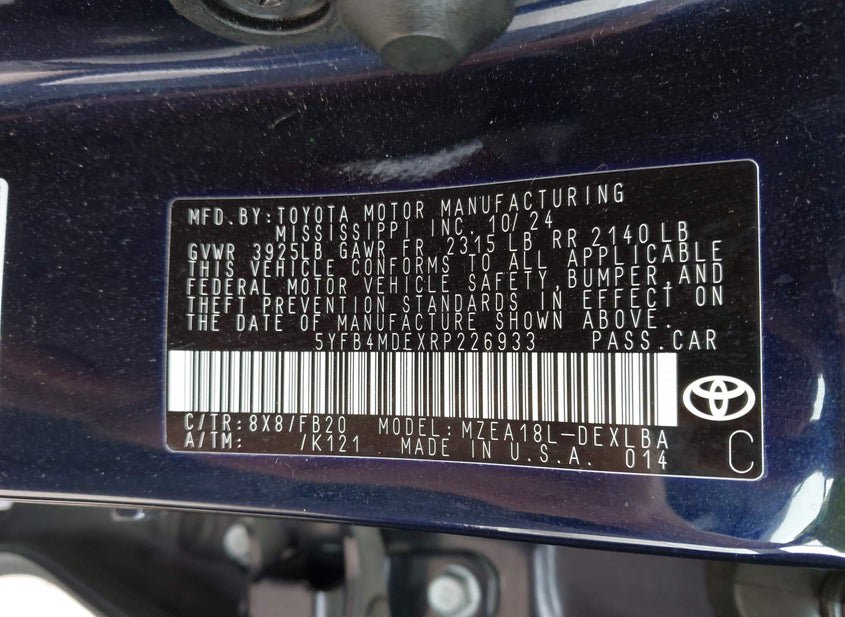 - VIN: 5YFB4MDEXRP226933