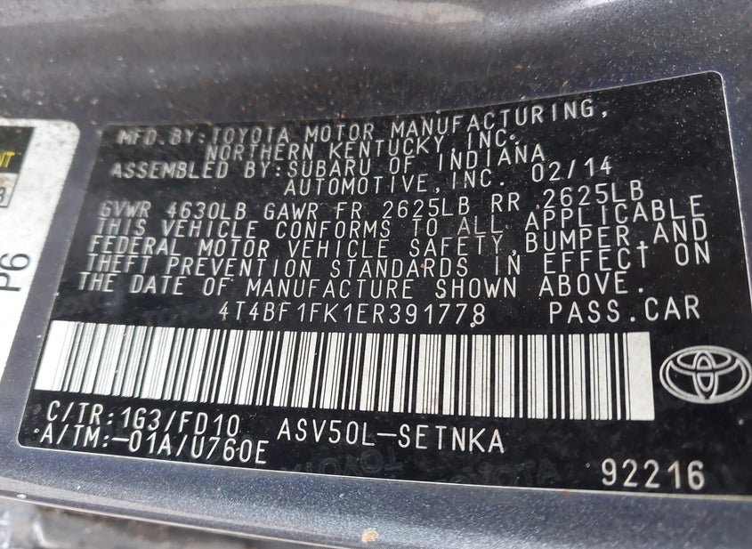 - VIN: 4T4BF1FK1ER391778