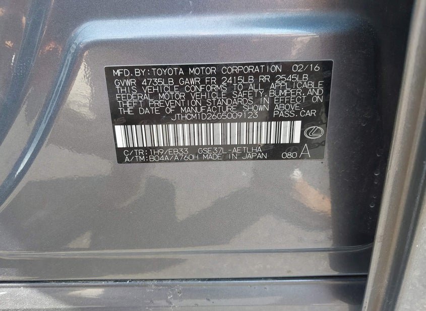- VIN: JTHCM1D26G5009123