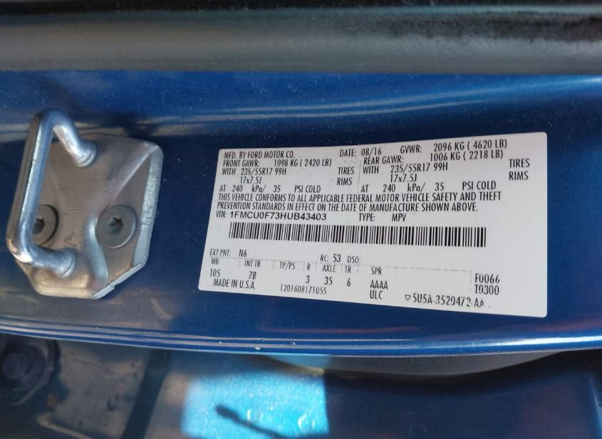 - VIN: 1FMCU0F73HUB43403