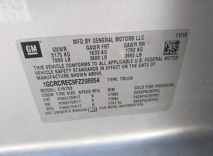 - VIN: 1GCRCREC9FZ208954