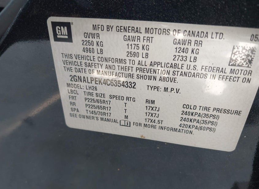 - VIN: 2GNALPEK4C6354332