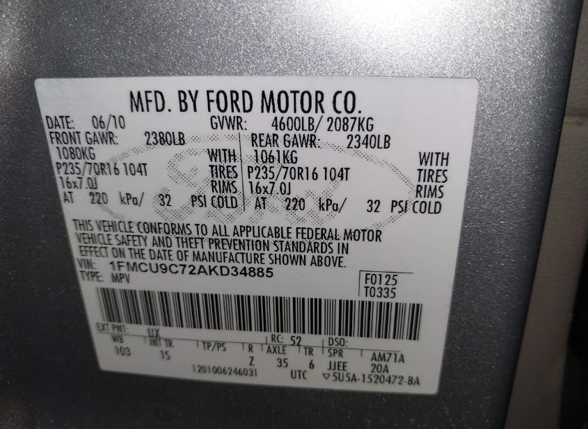 - VIN: 1FMCU9C72AKD34885